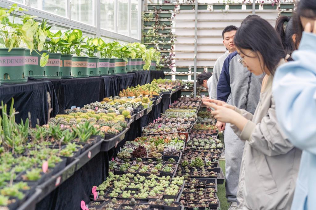 此次多肉展有两百四十余种,两千三百余盆多肉参展。包含景天科、龙舌兰科、大戟科、番杏科等众多科属。多肉的颜色也是非常丰富多彩的,有红黄绿蓝等等,呈现出了春天应有的色彩,展示了一个丰富多样、异彩纷呈的多肉植物世界。参观者们浸润式的感受到了生态文明教育的润物无声。与此同时,百余种、千余盆千姿百态、造型各异的多肉植物也成为校园的一道亮丽风景线,吸引了众多师生驻足观赏,打卡留言。
