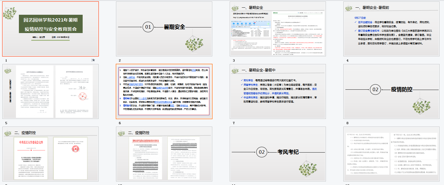 6月27日前,由各年级辅导员和各班班主任分别组织召开员工骨干会议和主题班会,传达学校暑期安全、疫情防控、考风考纪、滞校须知、返校须知等各项要求。要求以班级为单位签订《高等学校暑假安全责任书》,做到全覆盖、无遗漏,特别提醒同学们注意暑期防溺水、防骗、防盗、防火、防交通安全等问题,同时强调暑期留校的员工,外出锁好宿舍门窗,保管好随身贵重物品;注意用电安全,离开宿舍及时断电,不在宿舍乱拉乱接电线,不使用大功率电器、劣质插座和劣质充电器,严防火灾事故,经常与家里沟通,遇到特殊情况,一定要及时与家长和老师电话联系等。同时,要求各年级、各班级对员工暑期离校、滞校信息做好审批与统计,离校时间和去向、滞校申请必须经家长同意且报相关负责人审批。